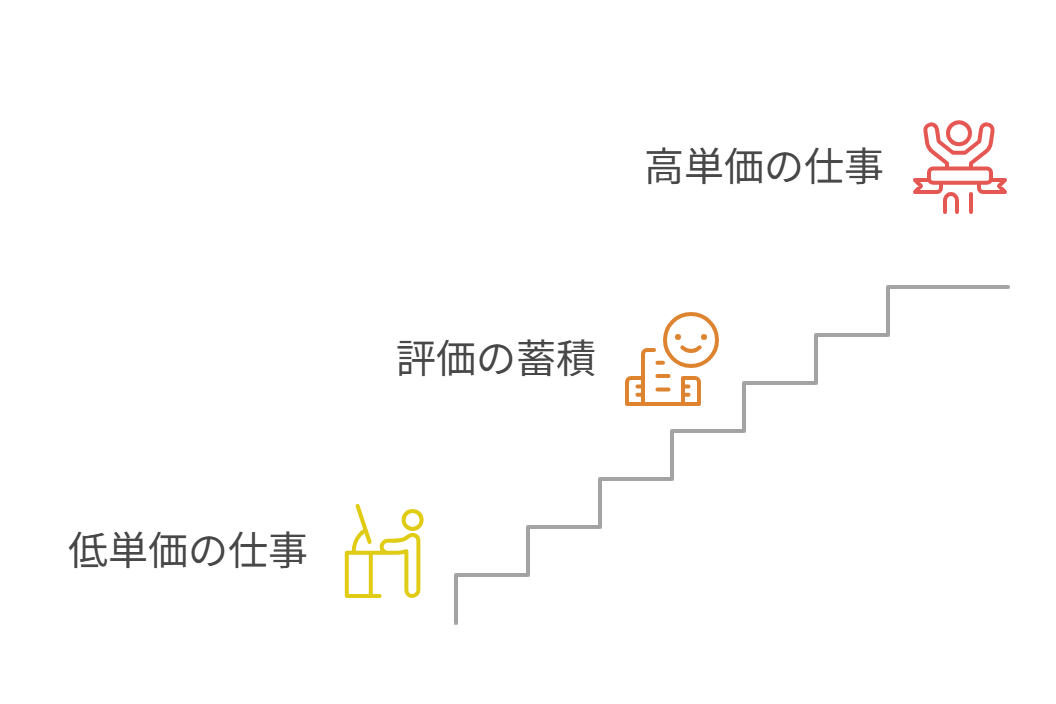 「はじめから高単価の仕事を得るにはどうしたらいいか」と考えるより、まずは評価を積み重ねることが報酬を上げるための近道になります。