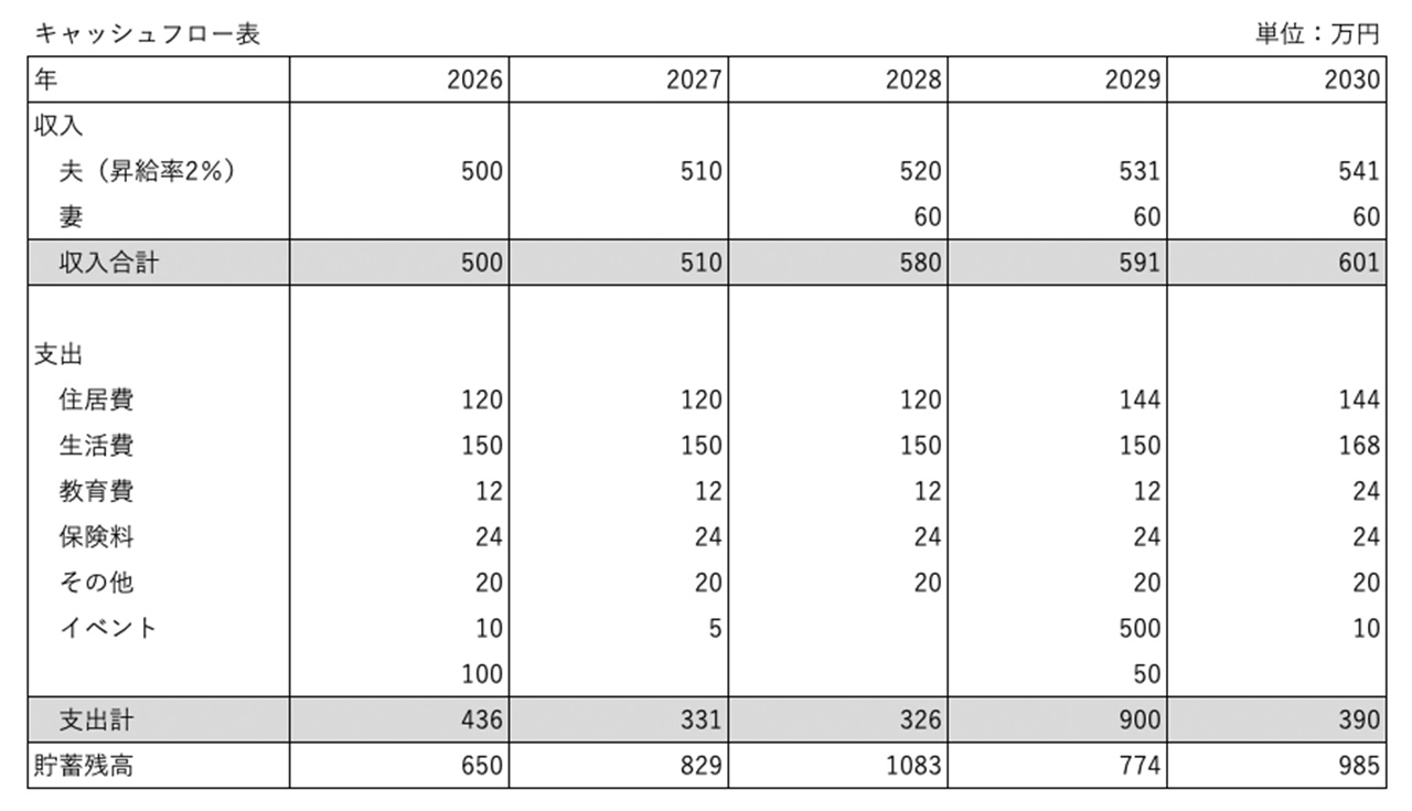 ライフイベント表とキャッシュフロー表を活用することで、将来のお金の流れや貯蓄額の変化が一目でわかります。問題点があれば、早めに対策をすることも可能になります。大きな出費が重なる年には家族の海外旅行を避ける、このままでは思っていたより貯蓄ができないようであれば妻のパート開始を2年早める、といった中長期的な視野で将来設計する際に役立ててください。