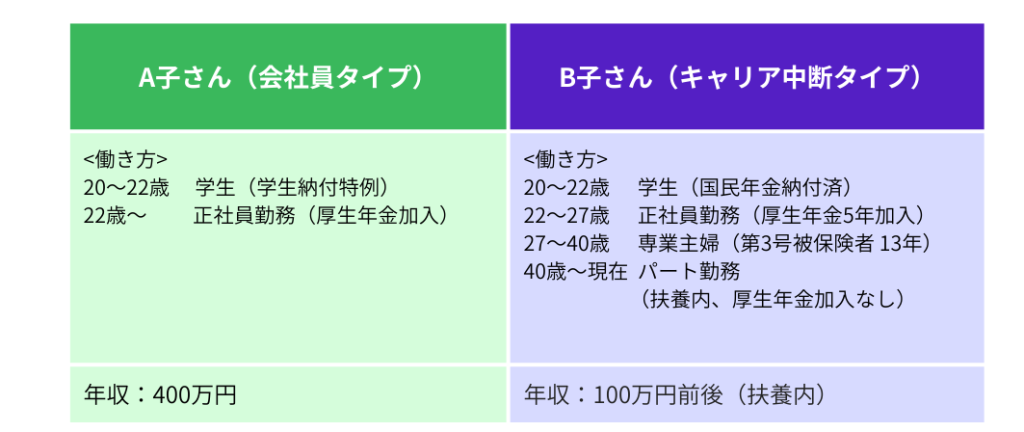 会社員のA子さん、結婚を機に退職し子育てが落ち着いてからパート勤務を始めたB子さんの2人の事例を元に、繰上げ・繰下げそれぞれの特徴と注意点を具体的に紹介します。