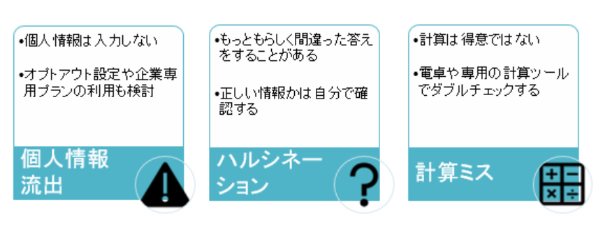 便利なChatGPTですが、安心して使うためには知っておきたい注意点があります。