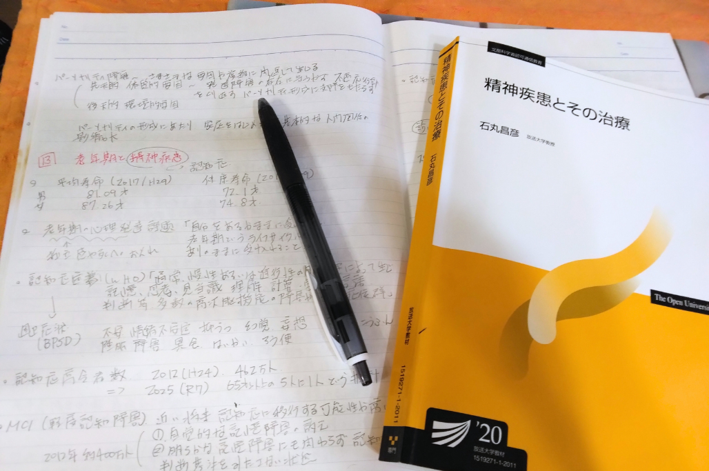 パートの仕事や親の介護に役立てられたらと思い、今は放送大学で、メンタルヘルスや認知症に関する講座などを半年ごとに1科目ずつ受講しています
