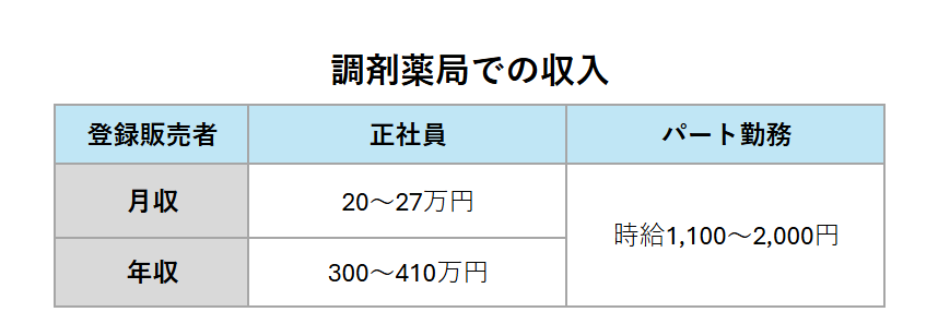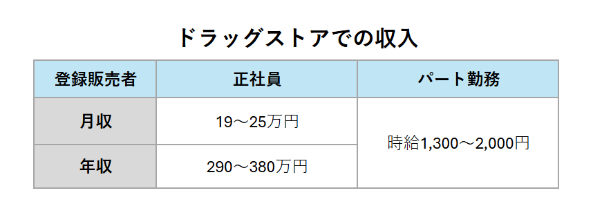 ドラッグストアで登録販売者として働く場合、以下の収入を目安にしておくと良いでしょう。