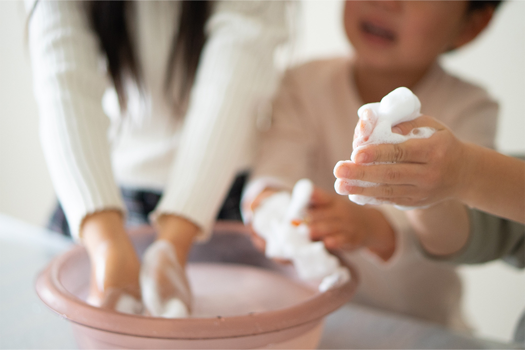 ハンドメイド石けん教室や子ども向けマルシェ「たまこマルシェ」を開催。 - 3児の母として育児に奮闘する中、ワークショップとの出会いをきっかけに起業。
